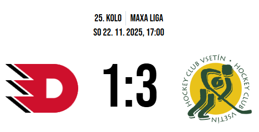 Pardubické béčko v utkání se Vsetínem dlouho hrálo vyrovnanou partii. Ve prospěch hostů se utkání zlomilo až ve 3. třetině. Dynamo doma padlo 1:3.