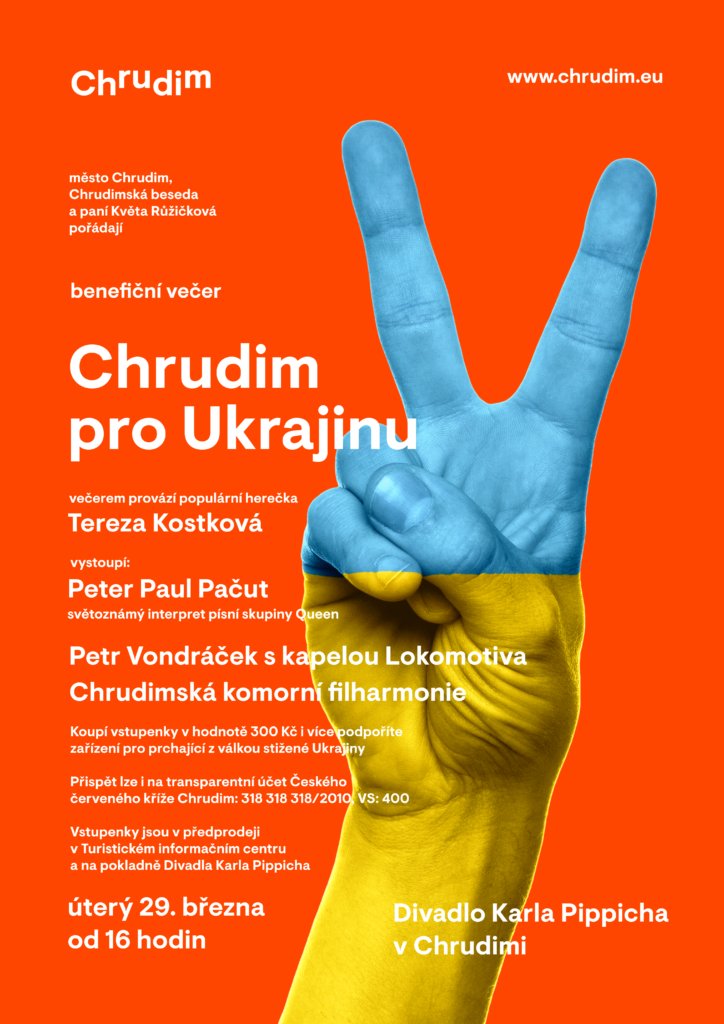 Přijďte podpořit benefiční akci na zajištění pobytu uprchlíků z Ukrajiny v Chrudimi a okolí. Všichni zúčastnění vystoupí bez nároku na honorář.