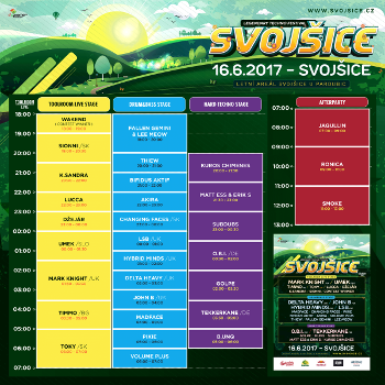 Festival Svojšice proběhne příští týden a letošní festivalový line-up je již kompletní. Do Čech se letos chystají takoví umělci, jakou jsou Mark Knight (UK), Umek (SLO) a Timmo (BG), Delta Heavy (UK), John B (UK), Hybrid Minds (UK) a LSB (UK). Pro ty, kteří preferují tvrdší techno, bude připravena i Hard Techno stage, kde zahrají O.B.I. (DE) a Tekkerkane (DE). Na festivalu také vystoupí špička z českých a slovenských DJs a producentů.