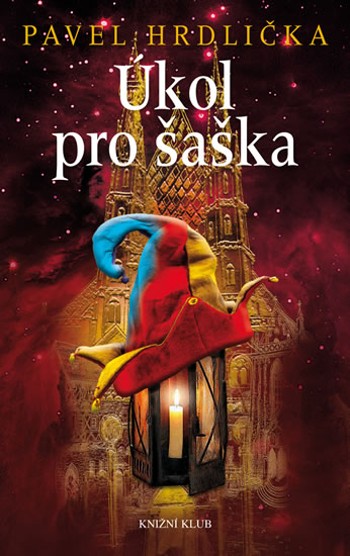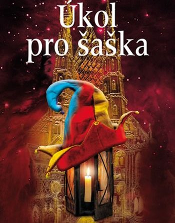Kniha si mě získala hned na první pohled. Zaujala mě jak svou anotací, tak i krásně barevnou obálkou. Pozadí obálky je laděno do červeného odstínu, v horní části obálky však červená přechází v černou a červeně svítí jen hvězdy. Do popředí vystupuje kouzelná šaškovská čepička s rolničkami, jež hraje třemi různými barvami – modrou, červenou a žlutou. Čepice je posazena na pootevřenou lucernu, v níž hoří svíčka. Za tímto výjevem je ve zlatě vykreslen kostel. Informace o autorovi a titulu jsou vcelku velké, avšak rozhodně nepřebíjejí celkový dojem z vyobrazení na obálce. Název knihy je vyveden většími bílými písmeny, jméno autora pak menšími zlatavými. Informace o nakladateli je uvedena v dolní části obálky a malými bílými písmenky. Co se týče názvu i obálky, oba komponenty věrohodně vypovídají o tom, s kým se v knize setkáme a jakou úlohu bude v celém příběhu hrát. Můžete se tedy těšit na strhující, čtivý a velice zábavný příběh.