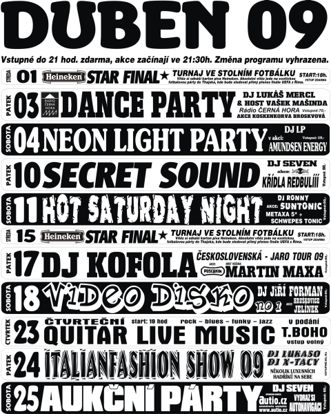 Každý měsíc budeme přinášet program všech klubů, diskoték a barů v Chrudimi a okolí.