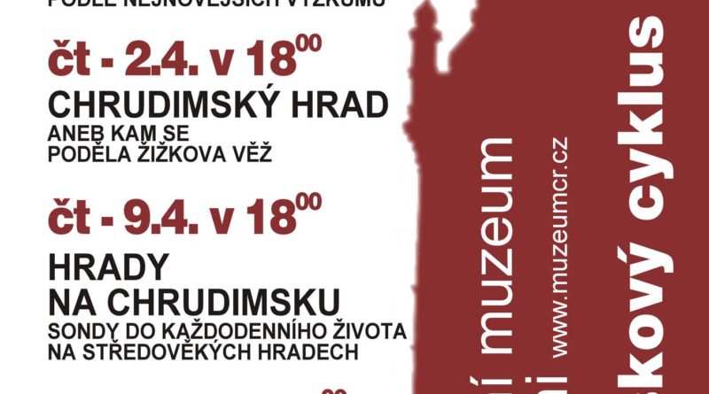 Regionální muzeum v Chrudimi pro veřejnost připravilo zajímavý cyklus přednášek. Na programu budou od 26. března do 16. dubna 2009, a to každý čtvrtek od 18 hodin. Jako první přijde …