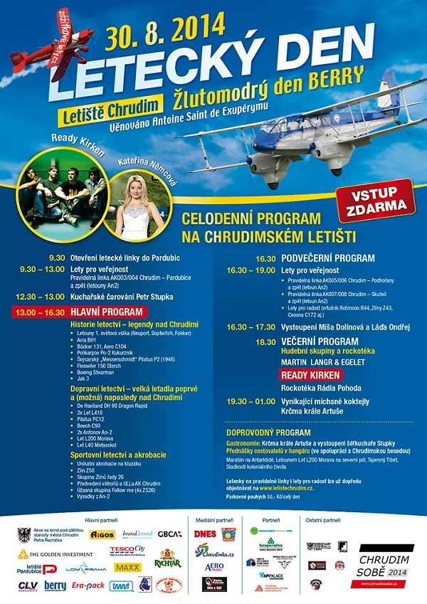 Využijte víkendu a přijďte se náležitě rozloučit s prázdninami! Těšit se na Vás budou pořadatelé Aeroklub Chrudim a město Chrudim.