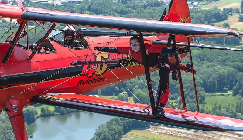 „V dnešní době předvádí toto vystoupení jen několik málo pilotů, kterým se po křídle prochází nebojácné ženy. I když se velice dbá na bezpečnost, tak i přesto se jedná o mimořádný výkon. Když se mě někdo ptá, jak je to náročné, tak pro představu uvádím příklad, který zná asi každý, kdo si vystrčí ruku z okénka automobilu jedoucího, řekněme devadesátkou. Žena na křídle je vystavena dvojnásobné rychlosti, a přitom se ještě prochází, což je obdivuhodné. Na letošní ročník Aviatické pouti, který se uskuteční na pardubickém letišti ve dnech 2. a 3. června předvede své umění dvojice ze švýcarského sdružení 46 Aviation. Jedná se o mladý manželský pár Emiliana a Danielle Del Buono. Emilian pilotuje historický dvouplošník Boeing Stearman a po jeho křídlech se za letu prochází sympatická Danielle. Takže se máme opravdu na co těšit,“ uzavírá Jan Rudzinskyj.