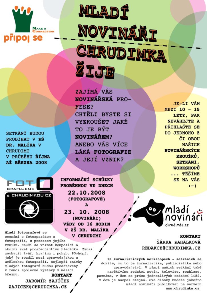 První informační schůzka pro zájemce z řad mladých fotografů se uskuteční 22. října 2008 v 16 hodin v ZŠ Dr. Malíka v Chrudimi.