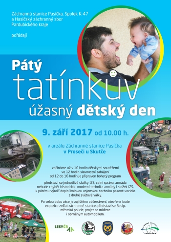 Záchranná stanice a ekocentrum Pasíčka zve na 5. ročník osvětové akce TATÍNKŮV ÚŽASNÝ DĚTSKÝ DEN, který se koná v sobotu 9. září 2017 od 10.00 hodin.