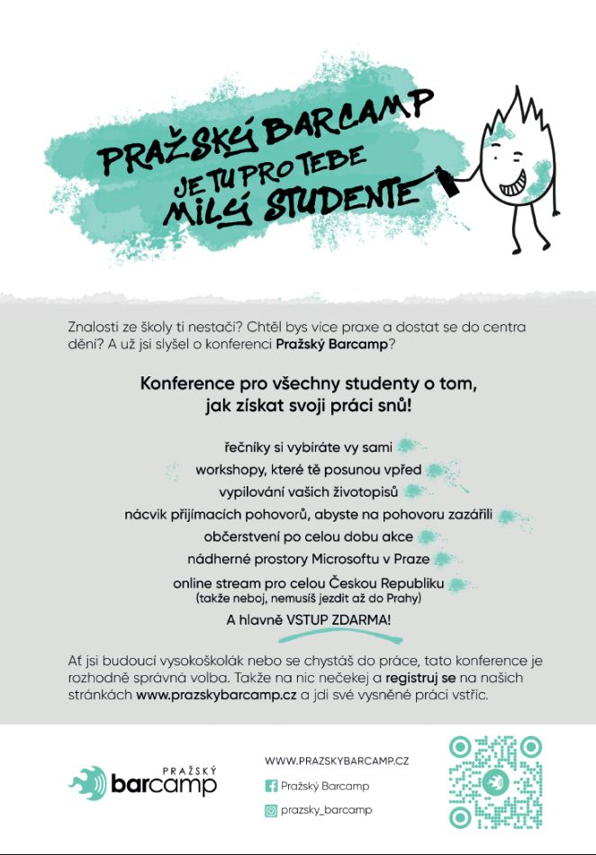 Jednoduše řečeno to je perfektní konference, kde nasbíráte informace, kontakty a zkušenosti. Akce, se jako každý ročník koná v Praze v prostorách Microsoftu, a to 14. 11. 2020 od 8h. Nemusíte jezdit až do Prahy, abyste se zúčastnili konference. Pátý pražský barcamp se bude streamovat i online!