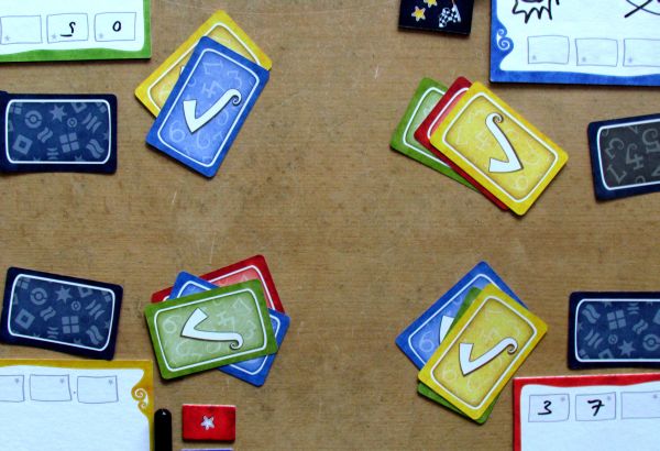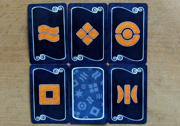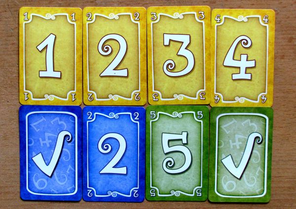 Ty jsou v krabici ve dvou balíčcích – menší na sobě mají opět sedm barev. V rámci jednotlivých hráčských barev jsou karty očíslované jedna až sedm – to jsou hlasovací karty. Černá barva tentokrát na sobě má buď jeden z šesti znaků (čtvereček, vlnka, hvězdička a další) nebo čísla jedna až sedm.