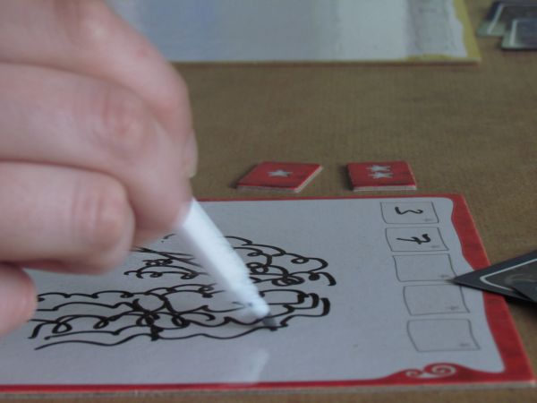 Sledování ostatních kreseb ale musíte současně dobře skloubit s kreslením. Jakmile si myslíte, že víte správnou odpověď na kresbu některého z protivníků, vyberete odpovídající kartu s číslem a položíte ji před něj na hromádku, kde už může ležet tip od některého z dalších protivníků. Podobně se hráči snaží uhodnout i vaši kresbu.
