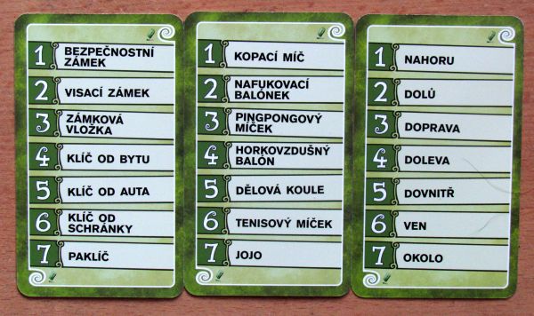 Vzhledem k počtu 96 karet v balení je zásoba slov v balení prakticky nevyčerpatelná, protože 96 x 7 je 672 a to ještě musíme vynásobit dvěma (karty jsou oboustranné), takže dostaneme výslednou hodnotu 1344 pojmů na kreslení.
