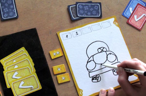 Jakmile si myslíte, že už nedokážete nic uhodnout a jste spokojení se svojí kresbou, vezmete si ze středu stolu žeton s nejvyšší hodnotou hvězdiček. Pokud budete mít štěstí, je to bonus, který dostanete na konci kola ke svému bodovému zisku.