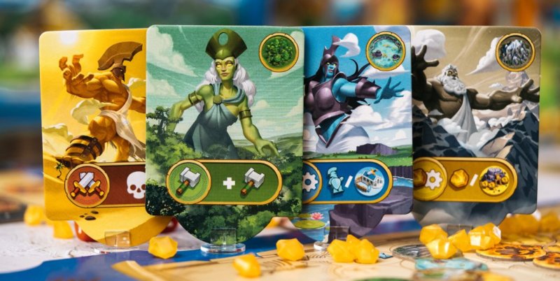 Dílky krajiny znázorňují váš postup při průzkumu ostrova. Typy krajiny, které na dílku najdete, určují, jaké zde můžete postavit budovy či chrámy. Přemýšlejte proto bedlivě, kam dílek umístíte. Utvoříte-li skupinu políček stejného typu krajiny, přilákáte pozornost titána… a budete moci využít jeho služeb. Na jednom typu krajiny – vulkánech – sídlí bájná monstra. Pokud je dokážete porazit, získáte z nich kořist, což vám ve hře může přinést značný náskok. Nedají vám však svou kůži lacino… souboj s monstrem vás muže stát cenné hoplíty či nemožnost věnovat se v daném tahu rozvoji své infrastruktury. Leč dokud vám na ostrově dlí monstra, vyhrát nemůžete…