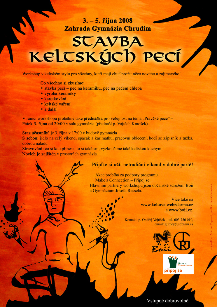 V pátek 3. října 2008 v 17 hodin se v prostorách chrudimského Gymnázia Josefa Ressela zahájí víkendový workshop z cyklu Řemesla pravěkých Keltů, zaměřený na výrobu keltské keramiky a zpracování železa.