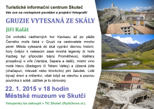 Cestopisné povídání s projekcí fotografií Jiřího Kaláta se uskuteční ve čtvrtek 22. ledna 2015 od 18 hodin v Městském muzeu ve Skutči. Seznámí vás s Gruzií – starobylou zemí, schovávající se …
