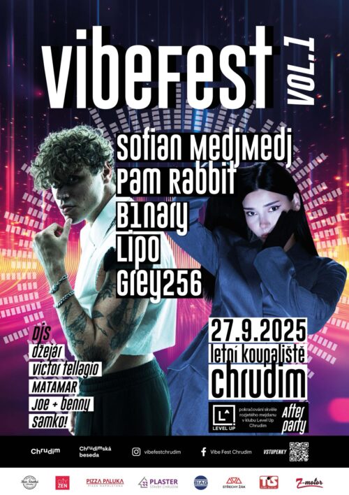 Letos Chrudim přidává do svého kalendáře kulturní novinku! V sobotu 27. září 2025 proběhne na chrudimské plovárně první ročník VibeFestu (majálesu). Tento jednodenní hudební festival pro mladé má velké ambice. Celá akce bude chtít náležitě zarezonovat s lokální scénou. Návštěvníci se do areálu budou moci dostat už od 12:00 hod! Konec celé akce se odhaduje na čas kolem půlnoci.