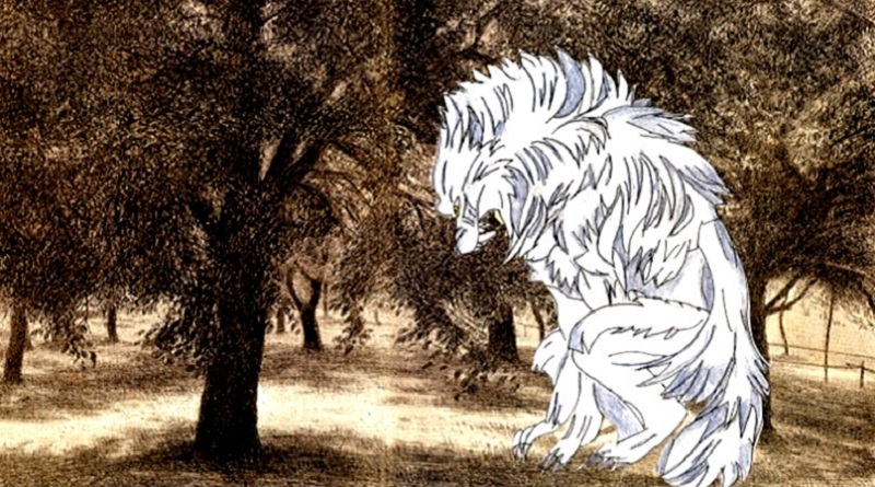 Bytost mezitím vstoupila na plochu zalitou září měsíce. Byla skutečně oblečena jako člověk, ale tvář, tvář měla zvířecí. Vypadala jako … vlk z pohádky o Červené karkulce. Jenže tenhle „vlk“ na sobě neměl babiččinu noční košili a čepec. Nad límcem pánského kabátu, pod rozcuchanými vlasy přízrak výhružně cenil dlouhé žluté zuby. V očích bylo patrné vzrušení lovce. A z rukávů vyčnívaly dlouhé vražedné drápy.