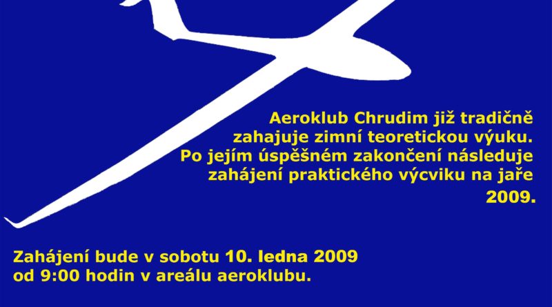 Aeroklub Chrudim již tradičně zahajuje zimní teoretickou výuku. Po jejím úspěšném zakončení následuje zahájení praktického výcviku na jaře roku 2009. Zahájení bude v sobotu 10. ledna 2009 od 9 hodin …